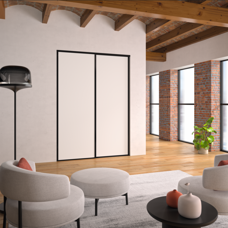Porte de placard Optimiz Aluminium - Blanc Alpin - Miroir Argent