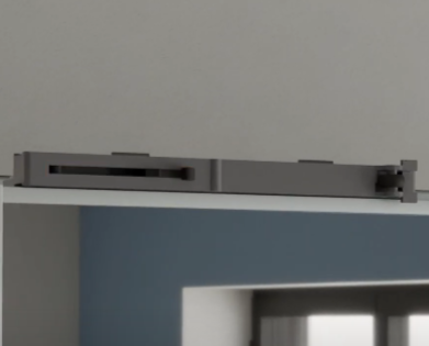 Il freine la course de la porte pour éviter les chocs contre les murs. Il est doté d’un système de rattrapage automatique de largeur de voie, pour un roulement encore plus silencieux.
